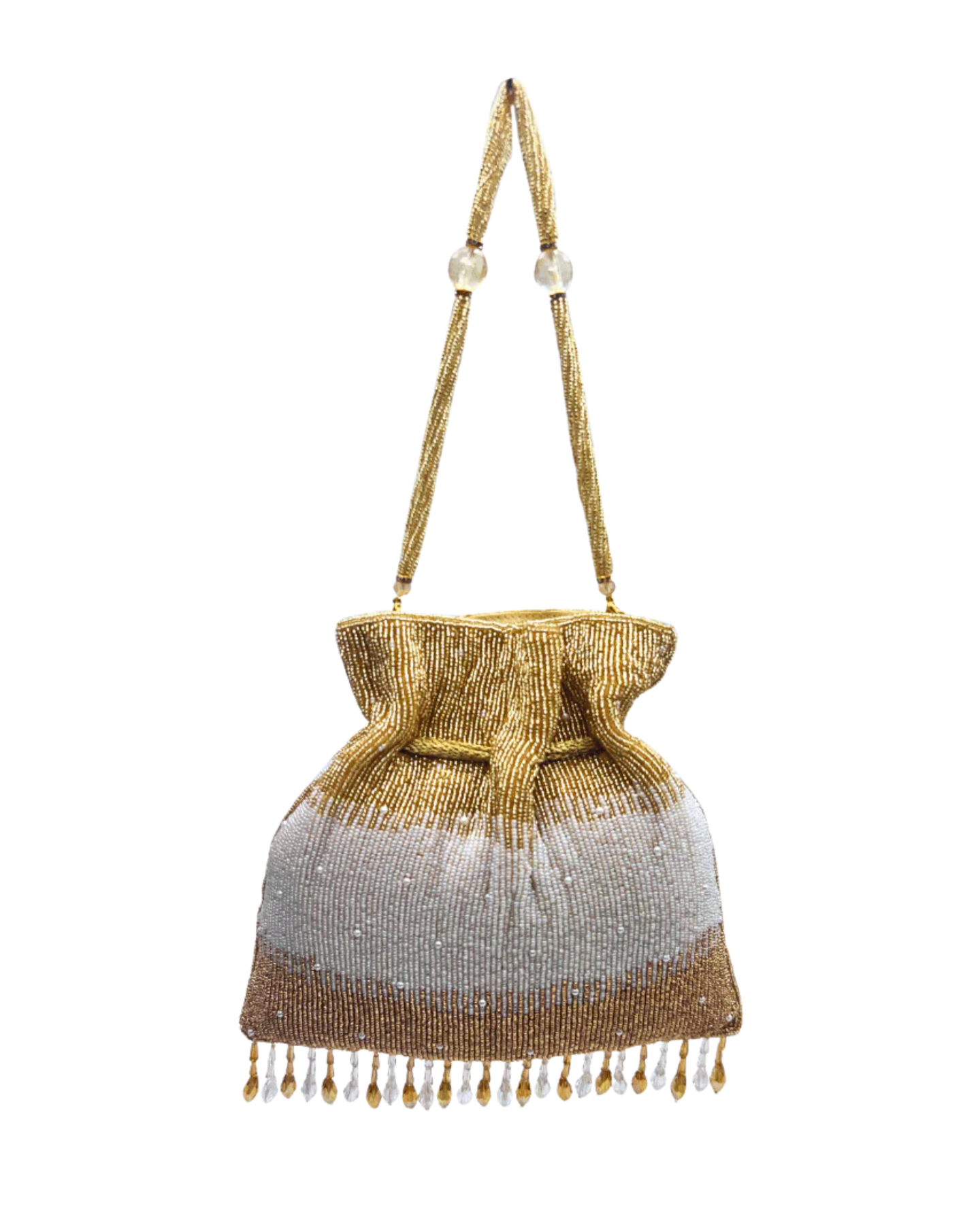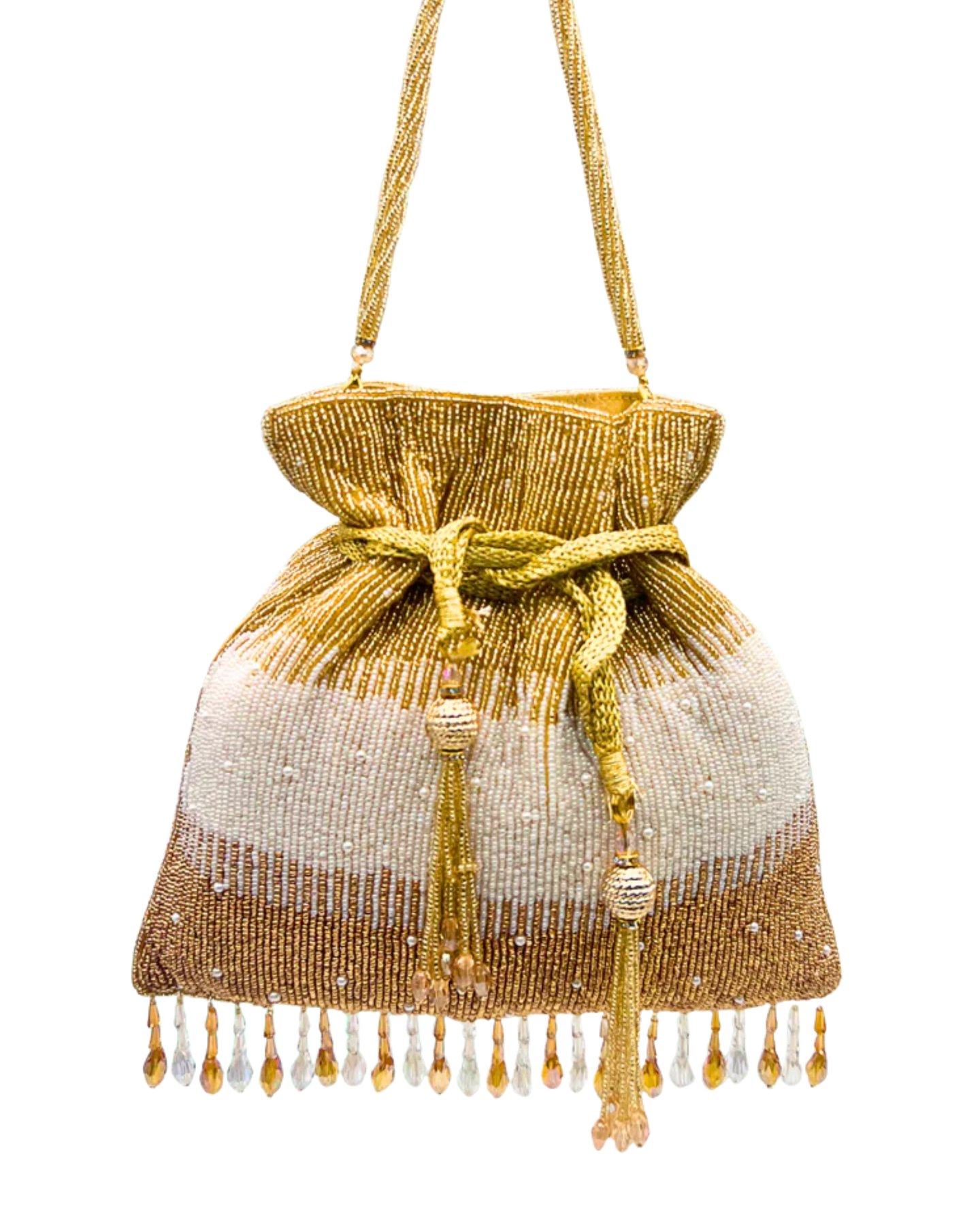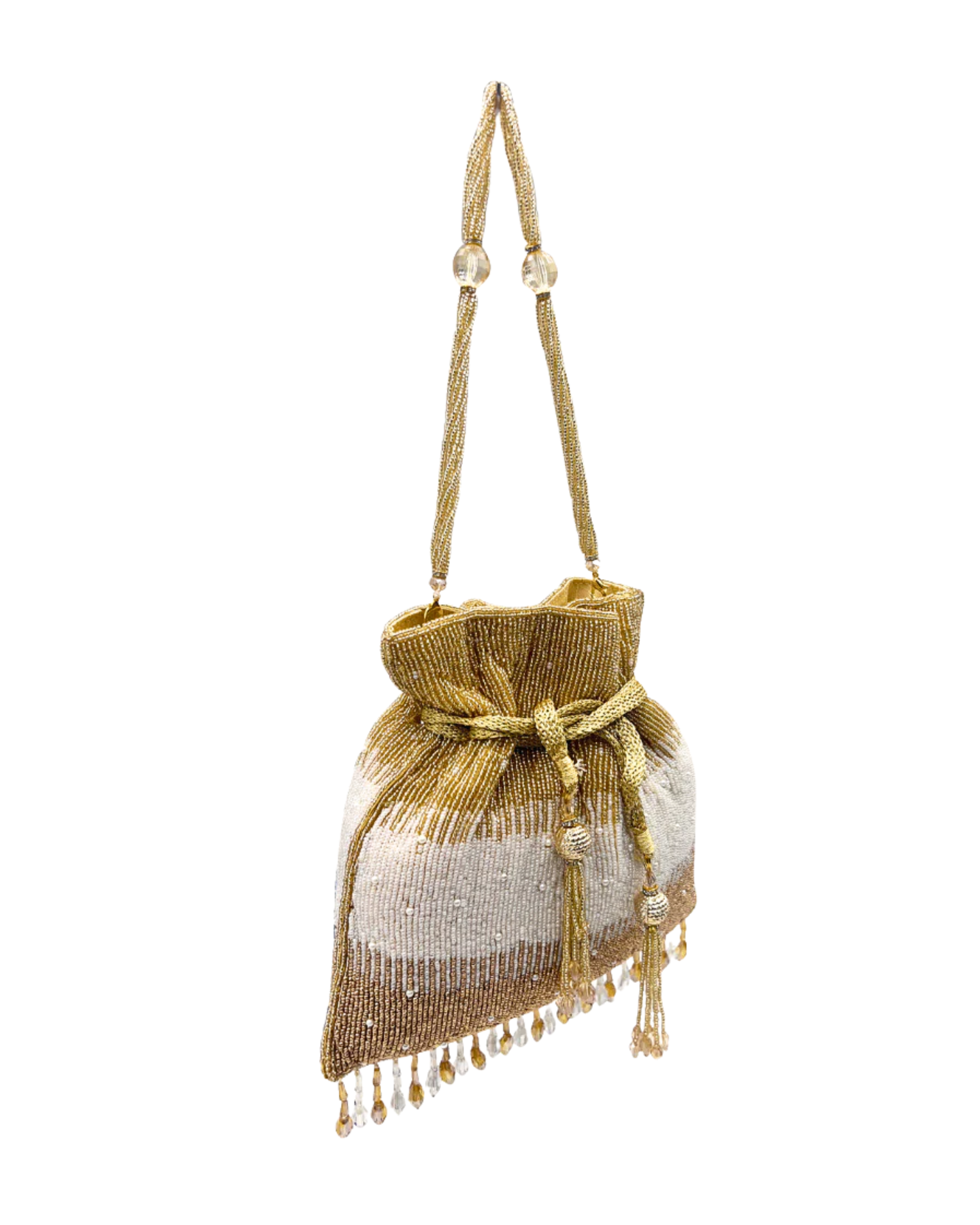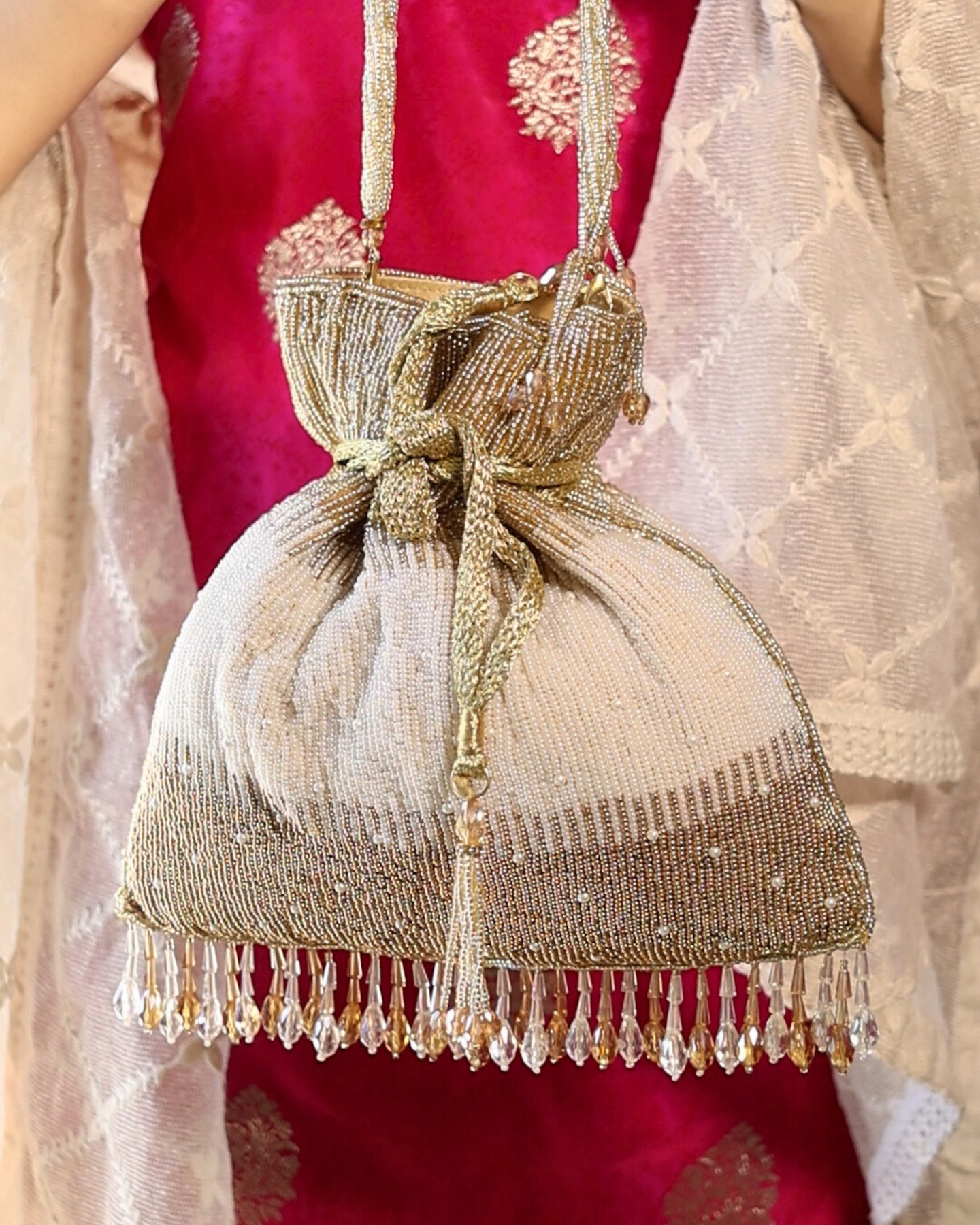 The Prime Gold Potli pairs elegant hand embroidery with a soft gold shine, ideal for receptions, festive outfits, weddings, and luxury gifting.