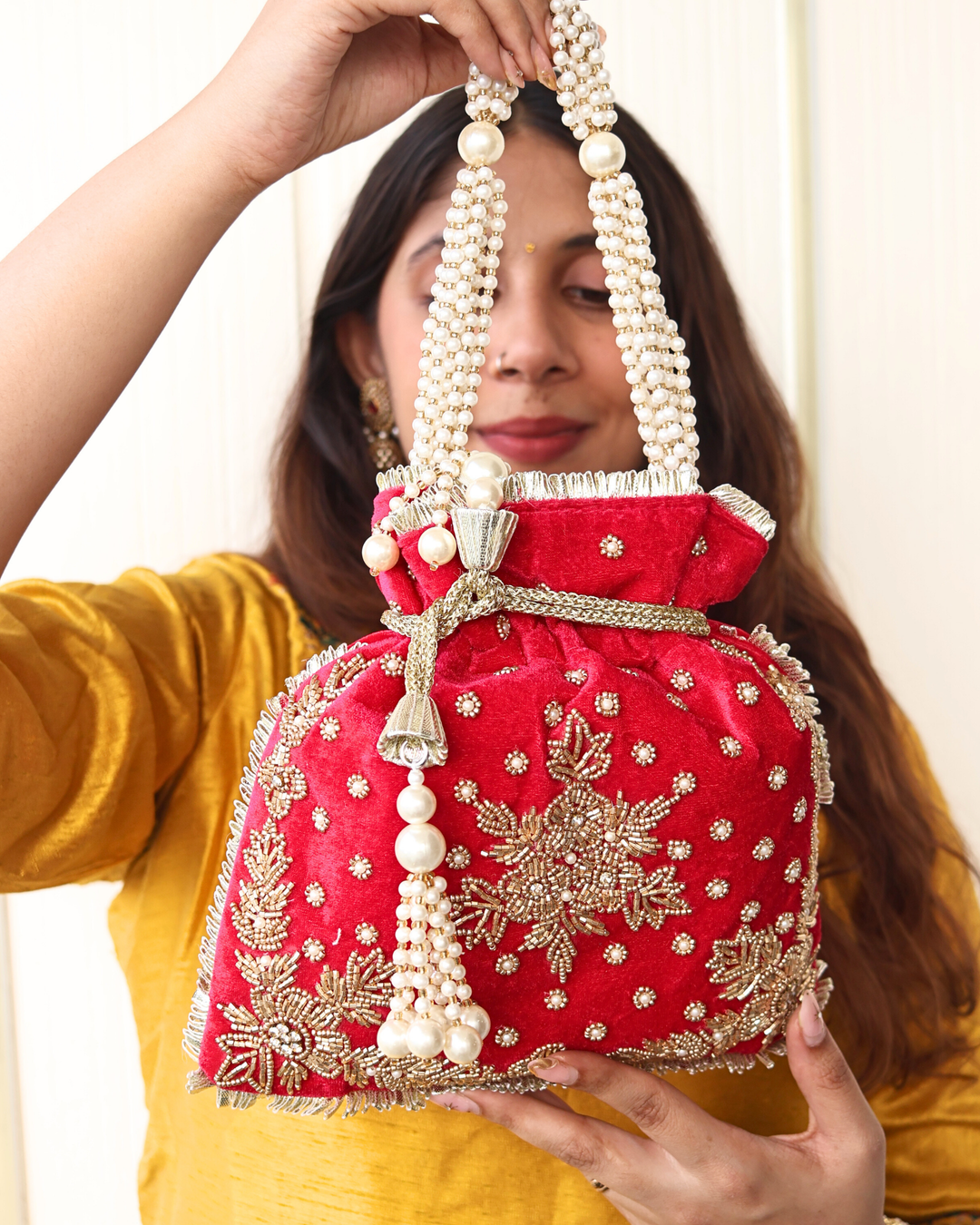 La Reat's Welly Women's Bridal Fancy Party Hand Embroidery Potli Bags, Ladies Purse Wallets, Evening Clutches, Handbags.